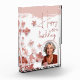 Fleurs de Parties scintillant rose Floral Femme Anniversaire Photo Block. Le design a de belles fleurs roses rousses en faux parties scintillant rose. Une photo personnalisée est dans un cadre à arc. Le texte est entièrement personnalisable.