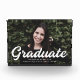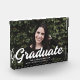 Célébrez la réussite de votre diplômé avec une photo tenue de diplôme personnalisée. Le bloc photo présente la photo horizontale du diplômé avec "Graduate" en gras blanc. Personnalisez le bloc photo du diplôme en ajoutant le nom du diplômé, l'école et l'année de diplôme.