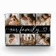 For the family who want a keepsake selection of photos on display. Turn treasured moments into timeless keepsakes with our beautifully designed 6-photo collage block. Whether it’s giggles in the garden, cuddles on the couch, or milestone memories, this frame lets you showcase the heart of your family in a modern, elegant layout. Here's what we love about this design: "Our Family" script with heart detail adds a loving touch to the center, you can upload six of your favorite photos—perfect for birthdays, anniversaries, or everyday joy. This would make a heartfelt gift for parents, grandparents, or anyone who cherishes connection. This is ideal for mantelpieces, desks, or gallery walls—wherever love lives. Designed to evoke warmth and togetherness, this photo block is more than décor—it’s a daily reminder of what matters most, your family.