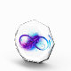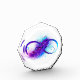Infinity symbole with a beautiful feather painted in purple and blue bright colors on white background