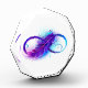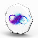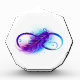 Infinity symbole with a beautiful feather painted in purple and blue bright colors on white background