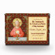 Pour les ministres extraordinaires de l'Eucharistie (EMHCs) + Dans cette splendide image, Jésus est assis à une table qui est fixée pour la Pâque et recouverte d'un chiffon bleu et blanc. Il est vêtu d'un vêtement rouge doux et accrocheur. C'est Maundy ou Jeudi Saint et Sa Dernière Cène avec Ses apôtres. C'est le moment où Il institue le sacrement de la Sainte Communion ou de l'Eucharistie. + La figure de Jésus est isolée d'un arrière - plan rouge foncé à motifs d'artichauts stylisés en forme de losange. L'humeur ici est solennelle. Laissant ses yeux au ciel, Jésus lève sa main droite en bénédiction. À sa gauche, Il tient une grande hôte, le pain eucharistique, sur le chalet rempli de vin. En latin, dans un banderole sous la scène, sont les mots de la consécration : "This is My Body.. This is My Blood" ("Hoc est corpus meum... Hic est sanguis meus"). En souvenir de Lui, à chaque messe, le prêtre réagit à cette action sacrée qui transforme le pain et le vin ordinaires en Corps et Sang du Christ. + Crédit d'image (SAU 045) : Impression dévotionnelle antique de Jésus Instituting the Holy Eucharist, publiée à l'origine dans la chromolithographie par la Socièté de St. Augustin, Bruges, Belgique, fin 19ème siècle, de la collection privée de l'architecte de l'éphémère religieux.