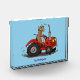 Cette drôle de vache brune conduit un tracteur rouge. Beaucoup de plaisir pour les fermiers ou les amateurs de vache!