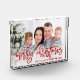 Pour un cadeau de vacances unique, ce bloc photo familial moderne comprend une photo de votre famille avec un faux script de parties scintillant rouge qui dit "Joyeux Noël". Personnalisez avec votre nom ci-dessous. Conçu par Susan Coffey.