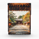 Capture the timeless elegance of Japanese heritage with this evocative digital photo art. Framed by the weathered wood of a traditional mon (gate), the viewer is invited down a sun-drenched stone path toward a magnificent temple sanctuary. Nestled among manicured pines and the soft hues of changing seasons, this piece perfectly embodies the "Wabi-sabi" aesthetic—finding beauty in the aged and the peaceful.