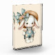 Ce design fantaisiste présente un lapin blanc irrésistiblement mignon vêtu d'une charmante salopette en jean, ornée de patchs de tissu pastel et associée à un chemisier à volants. Le chapeau de paille oversize du lapin, orné d'un ruban bleu rêveur et d'une délicate grappe de fleurs dessinées à la main, ajoute une touche de charme cottagecore vintage. Des textures douces et peintes, ainsi que des couleurs chaudes et atténuées, renforcent l'esthétique globale cosy et nostalgique, parfaite pour ceux qui aiment les visuels doux et inspirés des livres d'histoires. Les yeux expressifs et la légère rougeur donnent à ce lapin une personnalité sincère, ce qui en fait un ajout charmant aux thèmes de nurserie, à la décoration printanière ou aux cadeaux saisonniers. Œuvre d'art