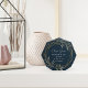 Créez une belle conservation de la naissance de votre bébé avec cet élégant bloc acrylique personnalisé dans une forme géométrique unique. Personnalisez avec le nom du bébé en écriture manuscrite, avec leur état de naissance (date, heure, poids et longueur) en dessous, entouré d'une fausse bordure en feuille d'or accentuée de feuilles d'hiver verts.