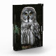 The Great Grey Owl - Portrait d'une grande chouette grise debout sur une bille photographiée en regardant directement la caméra. © Alan Harman Photography 2009. Tous droits réservés. www.alanharmanphotography.com. 210518 photoblock