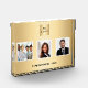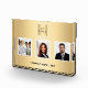 Un arrière - plan à l'allure d'or. Personnalisez et ajoutez le logo de l'entreprise, 3 photos et un texte à l'avant. Texte noir.