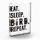 Oiseaux, ornithologues et amoureux de la nature adoreront le dicton de ce bloc photo célébrant leur passe-temps favori : "Mange. Dormir. Oiseau. Répétez." Qu'il s'agisse d'un fan décontracté qui aime les oiseaux dans leurs jardins, ou d'un photographe sérieux qui aime documenter la vie intéressante de ces beaux oiseaux chanteurs, ils vont adorer les oiseaux mignons qui jettent un oeil sur les lettres. Un cardinal rouge vif, une colombe molle, un adorable pic boisé et un beau pot bleu font leur apparition sur ce panneau acrylique, comme ils aiment souvent visiter nos chantiers ! J'aime les oiseaux depuis des années, et j'aime photographier les visiteurs de mes mangeoires de jardin ainsi que d'autres que je rencontre dans les parcs locaux. J'espère que vous apprécierez ce design ! Photos et design par Amanda Renee, CtrlZ Digital Designs