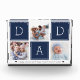 Créez un gentil souvenir pour un père bien-aimé pour la Fête des pères, son anniversaire, ou les fêtes, avec ce design simple qui comprend trois de vos photos Instagram préférées, arrangé dans un montage avec des carrés alternatifs de bleu marine qui épellent "DAD". Personnalisez avec les photos préférées de ses enfants, et ajoutez un message personnalisé le long du bas.