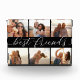 Célébrez l'amitié avec vos besties avec ce magnifique bloc de collage photo acrylique avec 6 photos préférées, avec "meilleurs amis" au centre en blanc écriture calligraphie lettrée sur un arrière - plan noir.