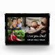 Moderne Simple Élégant Personnalisé Photo Collage D'Amour You Dad Photo Block. C'est un père génial ! Personnalisé unique en son genre, créez votre propre bloc photo de photo de collection de 3 photos personnalisées, avec un petit détail de coeur dans une conception d'empreintes digitales. Ajoutez facilement votre propre texte et vos photos personnelles. Ce souvenir customisé mémorable capture l'amour entre le père et l'enfant. La typographie moderne à main note "Aimez-vous papa" plus le ou les nom(s) de l'enfant ou de l'enfant. Option pour changer le nom de papa à papa ou n'importe quel nom que vous choisissiez, ou oncle, grand-père ou grand-père. Vos photos peuvent être en couleur ou en noir et blanc. Arrière - plan noir qui peut aussi être changé. Idée cadeau unique pour son anniversaire, Noël, Fête des pères ou juste pour la raison. Cadeaux pensés personnalisés pour papa de fille ou de fils pour le père qui ne veut rien. Ajout élégant à son bureau. Il le chérira toujours ! Step by Step Inspiration Series disponible exclusivement sur Zazzle à l'adresse zazzle.com/store/KrisHarty, conçu par le designer international Kris Harty. © 2020 Kris Harty Inspiration pas à pas