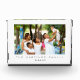 Ce bloc photo en acrylique minimaliste comprend votre photo personnelle et un texte moderne simple et élégant qui dit : famille. Ajoutez votre nom de famille et une date pour personnaliser ce panneau attrayant, ou supprimez complètement le texte. Ce bloc photo de table fait un parfait souvenir de famille !