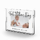 Cette belle photo-bloc de la Fête des Mères pour la première fois, présente un arrière - plan blanc simple avec une typographie en écriture moderne en noir qui dit "Fête des Mères de la Première". Ajoutez une photo d'elle et du bébé, avec de la place pour personnaliser avec les noms et l'année.