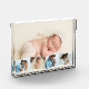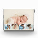 Créez votre propre bloc photo bébé unique. Le modèle photo est prêt à vous permettre d'ajouter 5 de vos photos préférées qui s'afficheront automatiquement comme une photo arrière - plan principale au format paysage, les 4 autres étant superposées dans un montage en zigzag. Le design a des cadres photo blancs étroits.