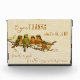 Adorable peinture vintage d'oiseaux perchés sur un membre avec le verset de l'Écriture de Psaume 136:1, "O rendre grâce au Seigneur; car Il est bon ..." Parfait pour l'exposition à Thanksgiving. Conçu par Simply Scripture ; peinture d'oiseaux avec l'aimable autorisation de Old Design Shop.