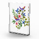 Bloc Photo Oiseaux Fleurs roses et bleues Aquarelle