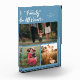Modern and whimsical family memory photo block featuring 3 photos with a text that says "our family is all heart" with tiny hearts. Denim blue.