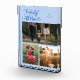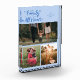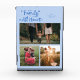 Modern and whimsical family memory photo block featuring 3 photos with a text that says "our family is all heart" with tiny hearts. Icy blue.