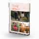 Modern and whimsical family memory photo block featuring 3 photos with a text that says "our family is all heart" with tiny hearts. Peach.