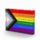This acrylic block features the intersectional pride flag colors of red, orange, yellow, green, blue and purple, along with black, brown, lt blue, lt pink and white, to include people of colour and transgender people. Also features the slogan 'our stories matter'. You can customise every element of this design, from text to colours, in the Zazzle design tool. 🏳️🌈 For more pride month designs, visit my store Zazzle.com/JessicaAmberArtist 🏳️🌈 For custom orders or questions, message me on Zazzle.
