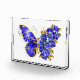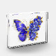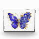 Bijoux, bleu, saphir, papillon aux fleurs pétillantes avec aile décorée de bleu, fleurs précieuses avec feuilles d'or sur arrière - plan blanc.