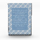 Cette oeuvre d'art est ornée d'un arrière - plan en plaid bleu poussiéreux et paisible qui évoque un sentiment de confort. Sur cette toile de fond apaisante se trouvent les mots d'Ésaïe 41:10 et 13, présentés dans une élégante typographie. Les versets, mettant l'accent sur la force et le soutien divin, se distinguent dans une couleur contrastée, invitant réflexion et inspiration. Cette pièce est un beau rappel de la résilience et de la foi, en faisant un ajout significatif à tout espace. Le verset de la Bible est personnalisable pour que vous puissiez choisir votre verset favori.