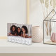 Créez un cadeau sucré pour grand-mère avec ce bloc photo acrylique personnalisé. "GRANDMA" apparaît sous votre photo en lettres gris chic, avec votre message personnalisé et les noms de petits-enfants superposés.