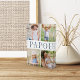 Créez un cadeau sucré pour un grand-père bien-aimé avec ce bloc acrylique vertical de quatre collages photo. "Papou" apparaît au centre en lettres bleues douces, avec votre message personnalisé et les noms des petits-enfants superposés.