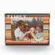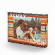 Beau cadeau photo customisé personnalisé pour chérir vos moments favoris en famille. Votre propre photo spéciale sera imprimée sur ce bloc de photo en acrilic pour une longue durée. Tout le texte est personnalisable à votre gré dans un script de typographie vintage rétrospectif correspondant à l'arrière - plan. Aquarelle peinte à la main sur le thème des rayures de coucher de soleil rétro, couleurs boho bohème : terre cuite, orange brûlé rouille, blanc, crème, beige, gris, bleu poussiéreux, bleuâtre.Une idée cadeau polyvalente de moins de 50 dollars, pour célébrer l’anniversaire, la fête des mères, la Saint-Valentin et bien d’autres occasions.Des souvenirs de famille séduisants décoration
