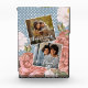 Blocage photo acrylique romantique pour customiser ou personnaliser avec un THEN et une photo MAINTENANT de mère et fille ou fils meilleurs amis. Sur une mignonne motif pois de couleur blanche et une jolie décoration florale. Fun Friendship Day, anniversaire ou cadeau de gardien pour votre meilleur ami... maman.