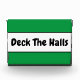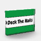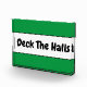 Ce design de vacances de Noël amusant présente un texte de DECK THE HALLS retro mignon dans une large bande blanche centre contre des rayures extérieures vertes.