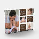 Première fête des pères idée cadeau -Un bloc photo moderne avec une grille de collage créée avec 4 photos et message sur un motif de bloc de bois rustique.