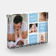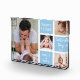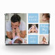 Première fête des pères idée cadeau - Un bloc photo moderne avec une grille de collage créée avec 4 images et message sur un bloc de couleur bleue tendance.