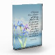 Ce design présente le verset biblique inspirant Romains 8:28 sur un fond aquarelle pastel doux. Des iris aquarelles délicats symbolisent l'espoir et le renouveau, renforçant l'atmosphère calme. Cette œuvre d'art est un beau rappel que tout concourt au bien, ce qui en fait un excellent ajout à tout espace paisible.