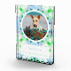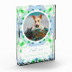 Pretty Blue Green Pet Cat Dog Memorial Keepsake Custom Photo Block. To commemorate your lost family member. Personalise this by replacing the photo and text to your own words. A fresh colors, modern geometric pattern starburst surrounds the photo of your pet. Celebrate your pet by capturing your cherished happy family memories with this keepsake.