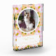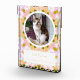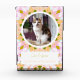 Pretty Pink Green Pet Cat Dog Memorial Keepsake Custom Photo Block. To commemorate your lost family member. To commemorate your lost family member. Personalise this by replacing the photo and text to your own words, to keep them forever in your heart. A warm colors, modern geometric pattern starburst surrounds the photo of your lost pet. Celebrate your pet by capturing your cherished happy family memories with this remembrance keepsake.