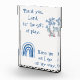 Monogrammé pour vous d'insérer votre propre prière si vous le choisissez, bloc photo. Ce joli thème boho avec un arc-en-ciel bleu et un éléphant, et le texte bleu sur un arrière - plan blanc, dit, Merci, Seigneur, pour le don du jeu. Bénis-moi alors que je vais en chemin.