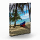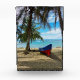Pura Vida au Costa Rica. Bateau sur une plage tropicale avec cocotier et mer des Caraïbes en arrière - plan, Puerto Viejo de Talamanca - Costa Rica