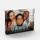 Surprise papa sur son anniversaire ou sa Fête des pères avec ce bloc photo en verre de keepsaké. Ce design moderne comprend une photo de paysage de votre choix, une superposition foncée en bas avec un texte en gras DADDY combiné avec un élégant script blanc "We love you" sur le dessus. Customisez ce produit en ajoutant un message, un nom et une date en mémoire. Un cadeau parfait pour les pères !