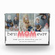 Bloc photo mère moderne avec 3 photos de famille pour vous remplacer par vos propres souvenirs, le dicton "meilleure maman jamais", et les noms des enfants.
