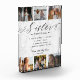 Envoyez un beau cadeau personnalisé à votre soeur qu'elle chérira pour toujours. La plaque est conçue comme une définition de dictionnaire avec "soeur" conçue dans un style manuscrit magnifique avec un arrière - plan en faux marbre blanc. Un bloc photo de collage photo personnalisé pour afficher vos propres photos de famille et souvenirs spéciaux. Notre design est composé d'un montage photo simple de 8 photos. Personnalisez avec la définition/le message de votre propre soeur et le texte/le message supplémentaire. Faites un grand cadeau pour les anniversaires, les anniversaires, la retraite et bien plus encore! Conception par Moodthology Papery.