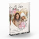 Bloc photo personnalisé que vous pouvez personnaliser pour n'importe qui et ajouter un dicton ou des mots préférés du coeur. Votre photo est placée dans un cadre en or géométrique en forme de coeur. Le cadre en pierres apparentes est décoré de bouquets d'aquarelle de fleurs roses. Il est écrit avec le libellé "Soeur .. toujours attentionné et partagé. Je n'aurais pas pu choisir un meilleur ami" dans un élégant script décontracté écrit à la main sur un arrière - plan neutre, blanc amande, que vous pouvez tous modifier si vous le souhaitez. Si vous rencontrez des problèmes de placement d'image, essayez de recadrer votre image vers une forme carré et de la recharger.