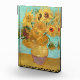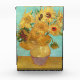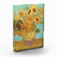 Sunflowers (1889) Vincent van Gogh. Encore la vie sur un arrière - plan bleu. Un bouquet de tournesols lumineux trône dans un vase. Reproduction d'oeuvres d'art célèbres dans le domaine public.