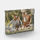 Créez une belle tenue de famille avec ce bloc photo acrylique moderne et autonome avec votre photo préférée bordée de feuilles et votre nom de famille et l'année recouverte de lettres de calligraphie blanche.
