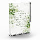 Ce design présente des feuilles dans des couleurs d'aquarelle vert émeraude chasseur, blanc classique et vert clair arrière - plan beau. Idéal pour vos fêtes mariages verdoyantes ! Cette invitation est spéciale, c’est un grand gardien pour la mère de la mariée et du marié ainsi que pour la mariée et le marié. Il est conservé dans du verre. Bon appétit !