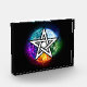 Artistically drawn, luminous pentagram with five magical elements, water, earth, fire, astral, air on black background. Wiccan pentagram. Wicca