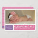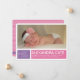 Partagez vos bonnes nouvelles avec ce faire-part de naissance de filles modernes de PiPo Press. Des blocs colorés de violet et de rose avec un joyeux motif sur le dos racontent à tout le monde à quel point vous êtes excité d'accueillir votre petite fille ! Personnalisez avec votre photo préférée de la nouvelle aimée et les détails de sa naissance et ce faire-part est prêt à partir.