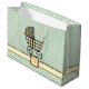 Promenez-vous avec ce joli pram stylisé décoré de rayures rose, orange, verte et bleue sur la couverture et d'un motif rappelant les blocs de bois sur le corps. Les zigzags à la menthe pastel et à la crème de l'arrière - plan accentuent la poussette aux couleurs vives. Customisez le bloc monogramme avec la dernière initiale du petit à venir pour créer un sac cadeau vraiment unique pour votre cadeau choisi. N'oubliez pas de consulter la collection complète de poussettes pour bébés pour plus de cadeaux et de produits pour un baby shower ou le petit de votre vie.